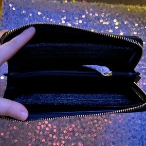 Victoria’s Secret Gold Hearts Wallet, it’s a large wallet with lots of card holders on both sides.