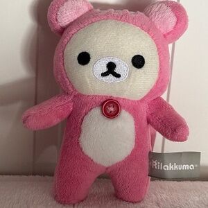 Mini rilakkuma plushy from the squirrel forest series, it’s in a squirrel costume.