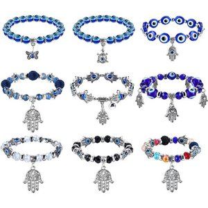 🧿🧿【EVIL EYE BRACALETS SET】--You will get 9pcs different beaded evil eyes bracelets in one package, wear this charm bracelet alone or stack,enough for your wearing and matching needs.