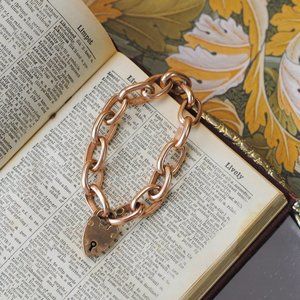9k Rose Gold Large Link Bracelet with Heart Padlock