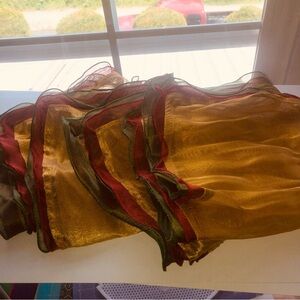 A delicious looking combo of a gold baskets with beads, 4 colourful napkins with gold , red ,and green in a silky like fabric. 4 colourful lovely beaded napkin rings to add a real touch of class. The metal basket feature a luxurious blend of gold and red, adding a touch of sophistication to any space. Perfect for organizing or as a standalone decorative piece, here I am using it to hold the napkins. The napkin, there are four are filled with wonderful vibrant colours, add a plain coloured napkin to the inside , place the napkin ring on and place on table. The rings themselves are distinctive looking and can be used with other napkins or with these to give an appealing look to your dinner table.