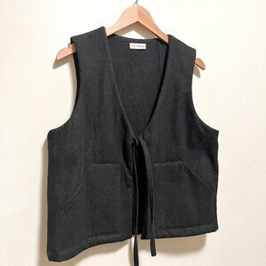 An insulated V-neck vest that's made for layering. Relaxed, roomy fit. 100% cotton denim (brushed for a soft hand feel); batting is 100% polyester.