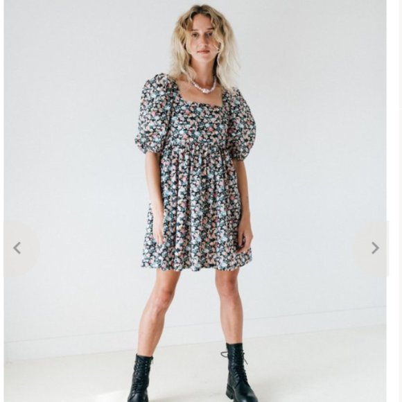 Chic and stylish floral mini dress with puff sleeves. Perfect for any occasion.