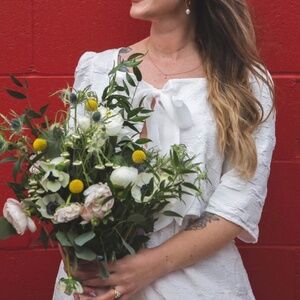 Gorgeous set from Canadian label A Bronze Age. EUC. It is the perfect wedding look, or great for a bridal shower, etc. So comfortable and airy, the skirt has an elasticized waist and was still perfect even though I ended up wearing it while four months pregnant!