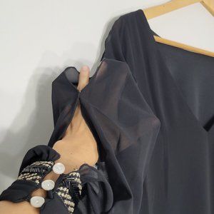 A. Byer Women's Black Sheer Polyester Long Sleeve V-Neck Cocktail Dresses Small