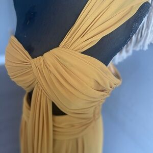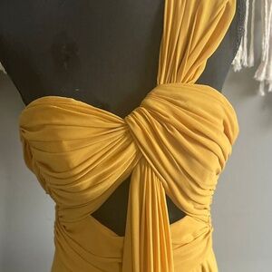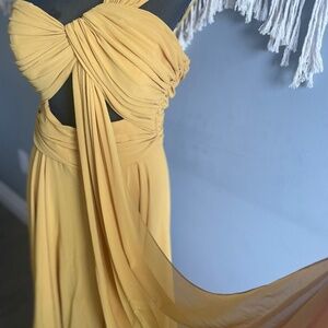 A CUT STRAPLESS CHIFFON EVENING DRESS