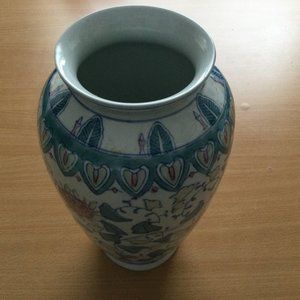 A Chinese porcelain vase green pink flower 9.5"