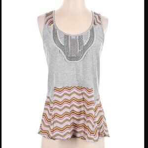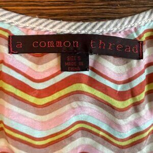 Selling a A Common Thread Multi-Colour boho scoop neck embellished metallic silver sequin tank top/tunic. Size Small. Some of the fabric is 100% silk. Other fabric is polyester blend.