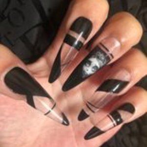 A Corpse Bride black n clear luxury press on nails com in any length n shape