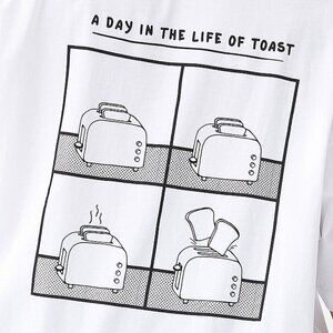 'A Day In The Life Of Toast' Black White Line Print Oversized Tee