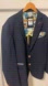 In great condition sport coat by A Fish Named Fred. Navy with fun pattern inside and built in pocket square that can be pulled up or tucked in. Lots of fun details. One repair on hanger loop as shown. European size 60/US Size 48 = XXL.