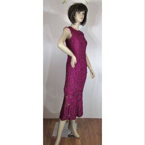 A JS Collections Embroidered Soutache Midi Dress, Berry, Womens Size 2