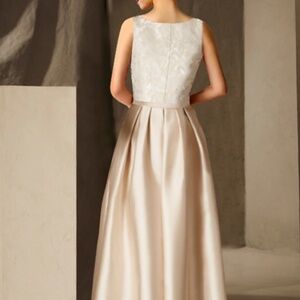 A Line Empire Waist Floor Length Satin Dress with Lace Bodice: the perfect 👗!