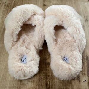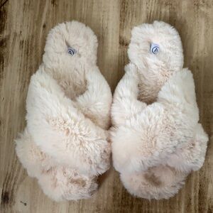 Super soft and comfy fuzzy cross band slippers. Very gently worn, but still very fluffy. Great condition. Size M.