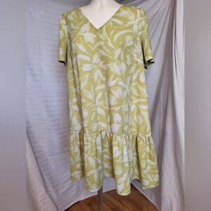 Chic floral print dress featuring a vibrant green and white pattern. Perfect for any occasion.