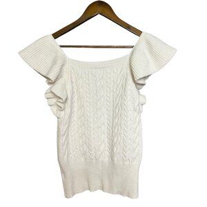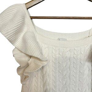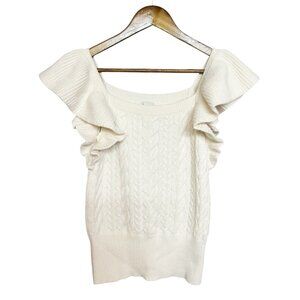 A New Day Off White Cable Knit Ruffled Sleeve Knit Top Size XS Soft Feminine