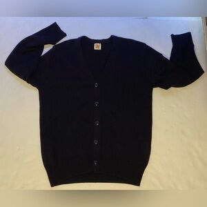 A+ SAI classic V- neck Knitted Button Up Cardigan. Navy, Med Unisex