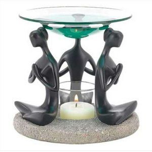 ♥ From within the heart of their circle, a glowing votive gently warms a pool of aromatic oil on the transparent plate above.
