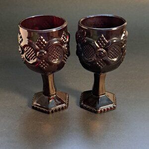 A pair of Vintage Avon Ruby Red Cape Cod Collection Goblet Glasses