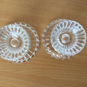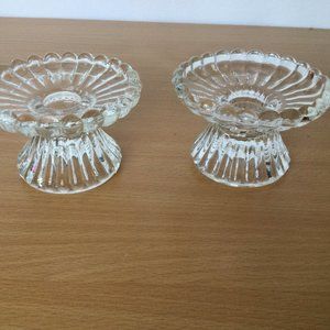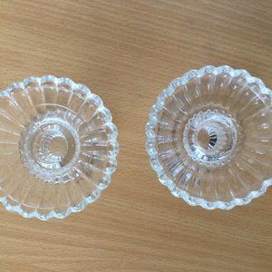 A pair of vintage clear glass candlestick holders art deco scalloped edge