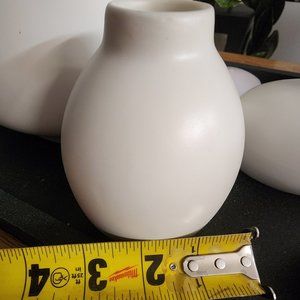 A pair of white ceramic bud vases perfect for one or a few small flowers or as decor as exemplified in some of the photos