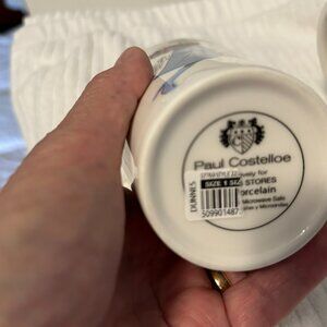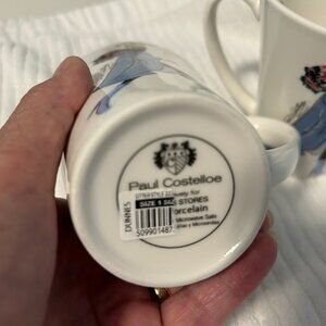 Beautiful, unused set of 2 Fine Porcelain cups Direct from Dublin. Each mug features a beautiful hand-drawn illustration by the designer. Dishwasher and microwave safe. Brought to you by Irish designer Paul Costelloe, exclusively for Dunnes Stores.