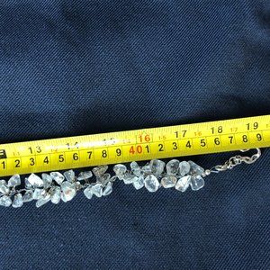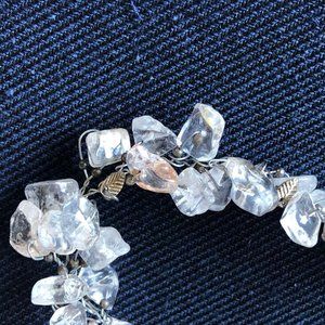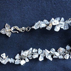 This is a statement piece designed and hand-made by an artist in New York. Stone is clear with coral color accent. Beautifully done. Comes in a little pouch. Overall length: 19 inch. Never worn, brand new!
