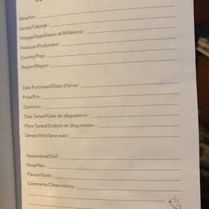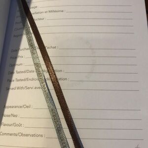 A beautiful book for keep a journal of wines. Has approximately 95 pages, one side for recording everything about the wine you’ve bought or tasted and the other side for affixing the corresponding labels.