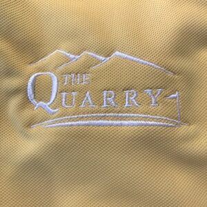 A woman’s beautiful yellow golf shirt from the “The Quarry” one of the most beautiful golf courses in Edmonton, Alberta.