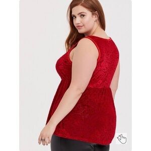 Torrid Velvet Burnout Peplum Top - Blood Red