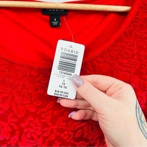 A009 Torrid Velvet Burnout Peplum Top - Blood Red