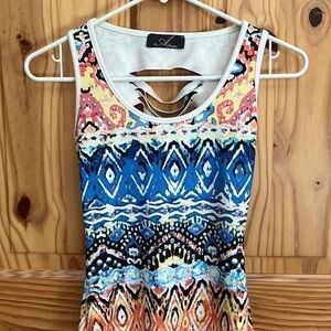 Beautiful multi colour (black, white, blue, orange, yellow, purple) print