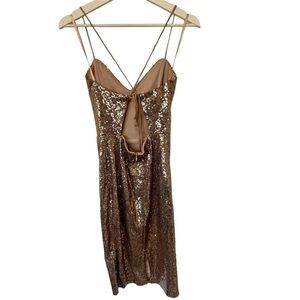 AAKAA GOLD SEQUIN OPEN BACK DRESS SIZE SMALL
