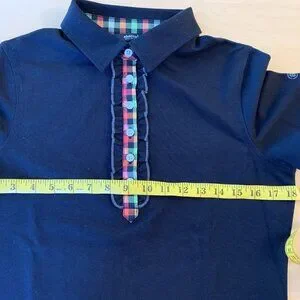 ABACUS Women's Performance Black Polo with contrasting plaid front ruffled placket and under collar
