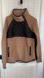 Stylish tan pullover with black quilted pleather accents. Features a unique button-up collar and side pockets.