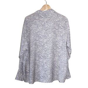 Elevate your wardrobe with the Abercrombie & Fitch Women's Boyfriend Faux Silk Button-Up Shirt. This versatile piece, available in size XL, brings a touch of elegance to any ensemble, whether you're headed to the office or a party. Its relaxed 'boyfriend' fit ensures comfort, while the smooth faux silk fabric offers a luxurious feel with a lightweight and non-bulky texture that's perfect for layering or standalone wear. The shirt features a classic wavy pattern in ivory and beige tones that complement a variety of outfits and occasions. A neat collared neckline and button detailing on the cuffs add a polished finish. The shirt is a stylish addition to your collection that doesn't compromise on practicality or style.