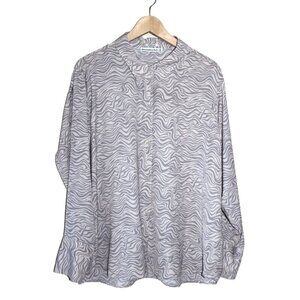 ABERCROMBIE & FITCH Boyfriend Faux Silk Button-Up Shirt in Cream Pattern (XL)