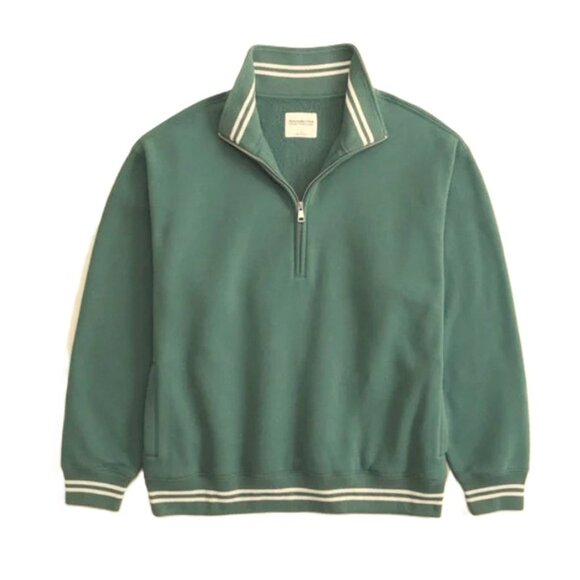 ABERCROMBIE & FITCH Essential Vintage Sunday Half-Zip Pullover in Green (Large)