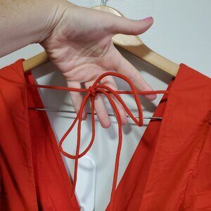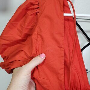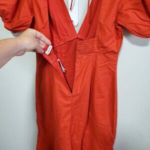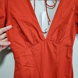 ABERCROMBIE & FITCH A&F NWT Puff Sleeve Slim Poplin Midi Dress V-Neck Red
