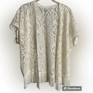 ABERCROMBIE & Fitch Cream Boho Coastal Grandma Open Cardigan Fringe One Size