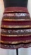 Beautiful sequin mini skirt with beads and velvet detail. Fully lined. Side zipper closure. Silver, red, gold, sequin.