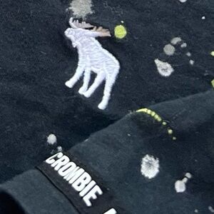 ABERCROMBIE Kids Youth Sz 13/14 Paint Splatter Patterned Black Short Sleeve Top