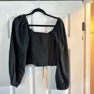 Never worn ABERCROMBIE black lace-up blouse with elastic back and side zipper. Size small.
