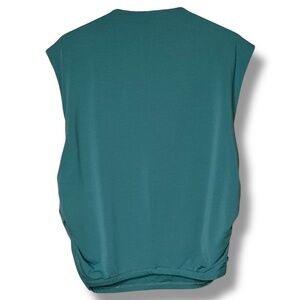 ABERCROMBIE&FITCH Paloma Teal Cotton Blend Stretch Rusched Side Funnel Neck Top