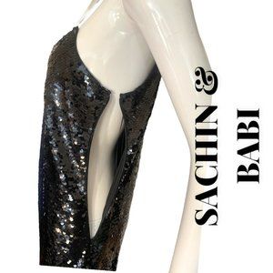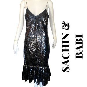 ABFAB! SACHIN & BABI BLACK SEQUIN SHIMMER MIDI DRESS (SZ 4) (NWT)