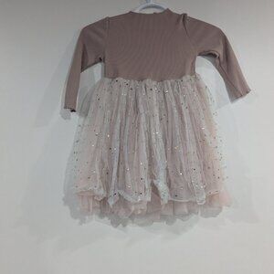 ABNN Ribbed Dress with Star Print Tulle Skirt Pink White Gold Size 110cm Size 5