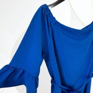 ABS Allen Schwartz Off Shoulder Bell Sleeve Mini Dress Indigo Blue