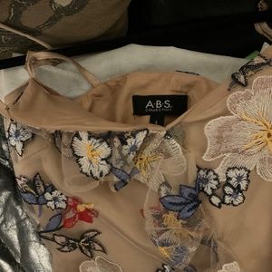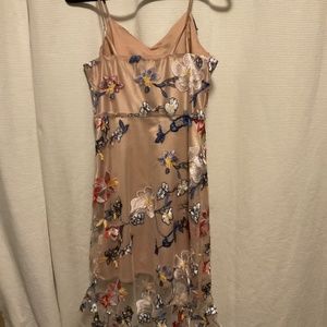 A.B.S Collection Pale Blush Floral Embroidered Midi Mesh Dress