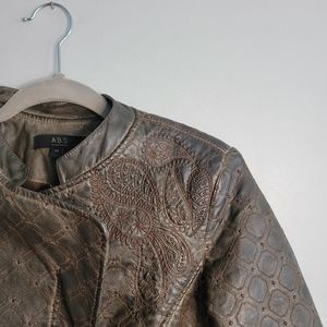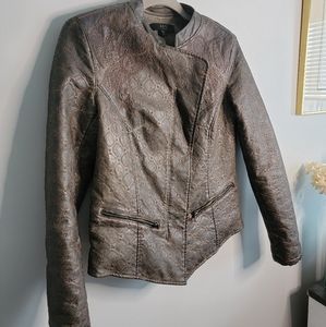 ABS by Allen Schwartz Medium Espresso Brown Faux Leather Moto Jacket