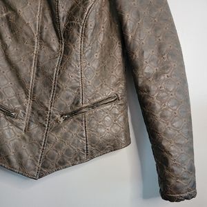 - Moto style jacket with embroidered diamond pattern details